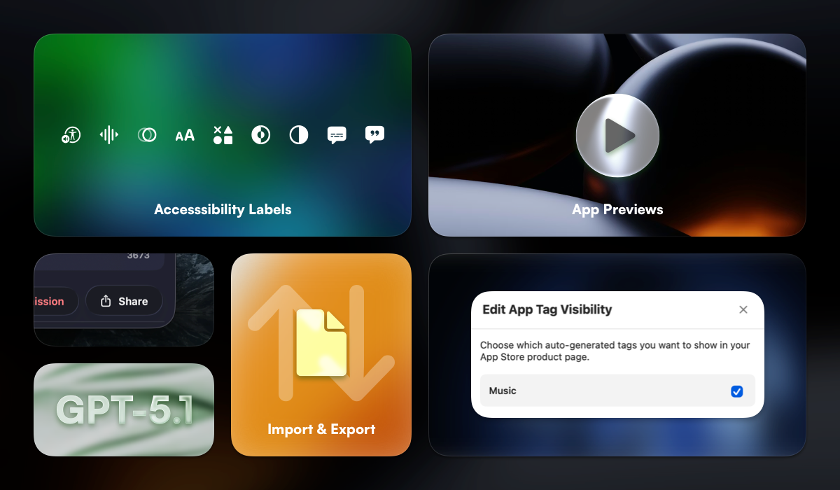 October + November 2025: App Previews, Age Rating Declarations, Import/Export, and more.